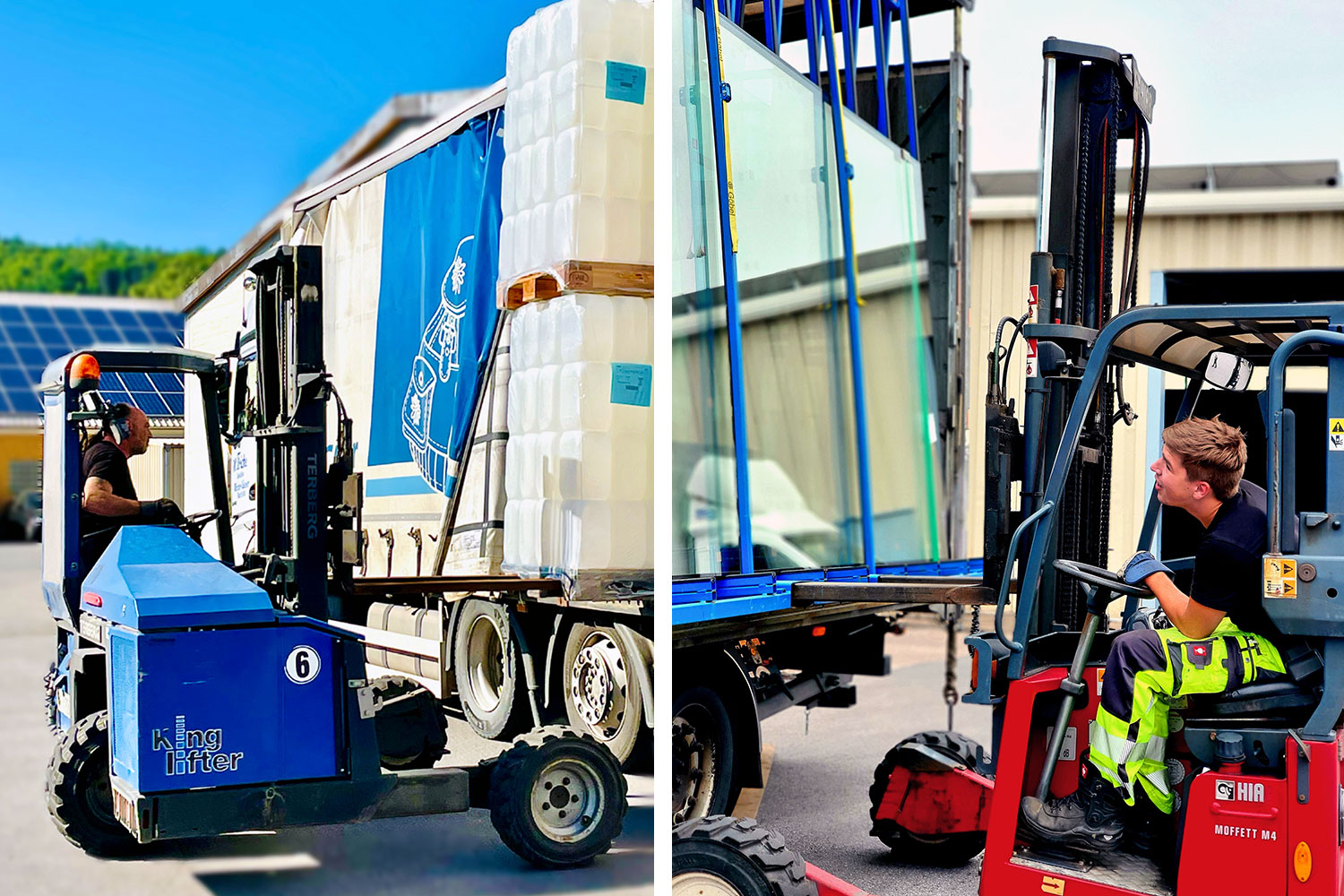 Alle Jumbo-Gliederzüge und Sattelzüge sind mit Mitnahmestaplern ausgestattet. So können wir die Güter flexibel und unabhängig bei Ihnen und Ihren Kunden be- und entladen. Unsere Mitarbeiter sind hierzu gut ausgebildet und übernehmen gerne die professionelle Ladungssicherung vor Ort.